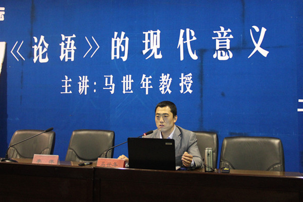 马世年教授分别从“仁者爱人”与人生修养、“敬及不违”与孝道传统、“行己有耻”与耻感文化、“必也正名”与社会秩序、“为政以德”与国家治理、“有教无类”与现代教育等六个方面详细讲述了《论语》的现代意义,强调了“己所不欲,勿施于人”以及孔子“忠”、“恕”思想给当代的启示。