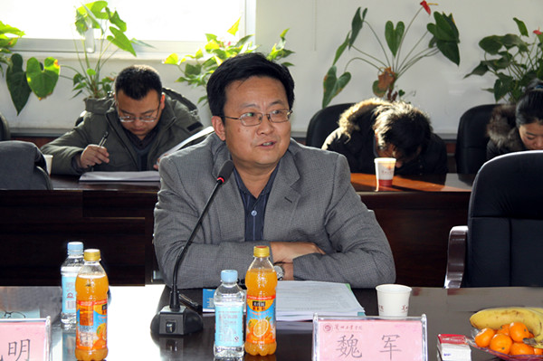 魏军就我院办学理念、学科建设、科研管理等情况向专家们作了介绍,希望进一步加强校际交流合作、共同发展、共同提高。(科研处/供稿 宣传部/摄影)