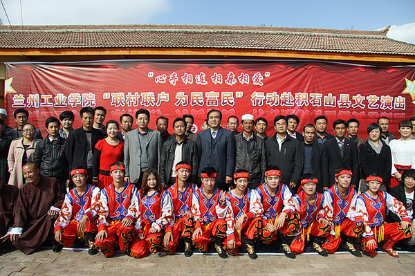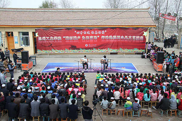 送文化下乡,活跃“双联”乡村群众的文化生活,是我校确定的“联村联户、为民富民”行动的重要工作之一。10月18日,校党委副书记何春海带领“联村联户、为民富民”行动办公室部分成员和大学生艺术团的老师和同学们驱车来到徐扈家乡进行文艺表演。徐扈家村和长家寺村的父老乡亲、徐扈家小学全体师生、徐扈家乡全体干部以及周边村镇的群众观看了文艺演出。艺术团师生充满青春气息、富有时代感的节目深深吸引了广大干部群众和师生的眼球,台下不时响起热烈的掌声和一阵阵欢笑。表演结束后,学校双联办成员又和当地干部群众进行了深入交流,群众纷纷夸赞大学生们表演的节目健康活泼、内容新颖,他们说看这种节目是一种精神上的享受,对孩子们也是一种很好的教育,他们希望学校能经常到村上进行表演。何春海副书记说,我们到村上来,就是真心实意想为乡亲们办些实事,办些好事,今后我们还要开展师资培训和技能培训等工作,希望广大群众踊跃报名、积极参加。他说,兰州工业学院广大师生希望学校和徐扈家乡的合作更加密切、更加深入,期盼在大家的共同努力下徐扈家乡的经济社会有更好更快的发展。(宣传部 /供稿、摄影)