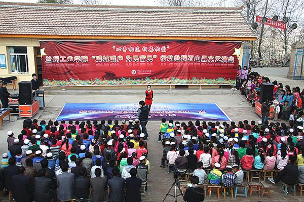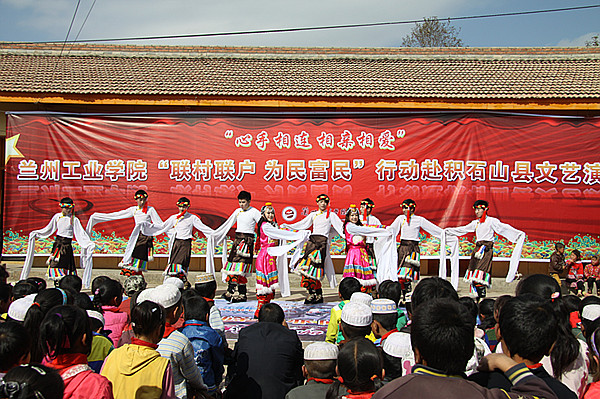 十月的太子山秋高气爽、层林尽染,山下的徐扈家小学院内鼓乐喧天、人头攒动,一片欢声笑语。这里,兰州工业学院的师生们正在举办主题为“心手相牵、相亲相爱”的文艺表演。