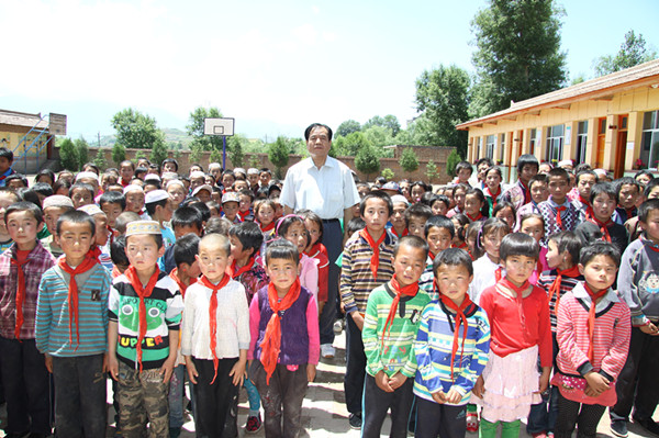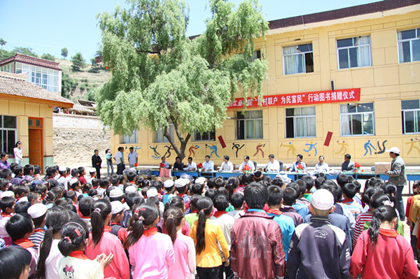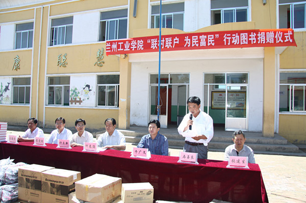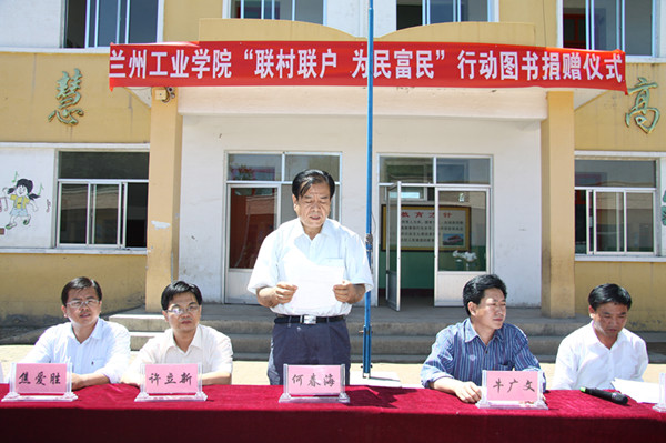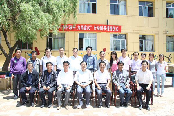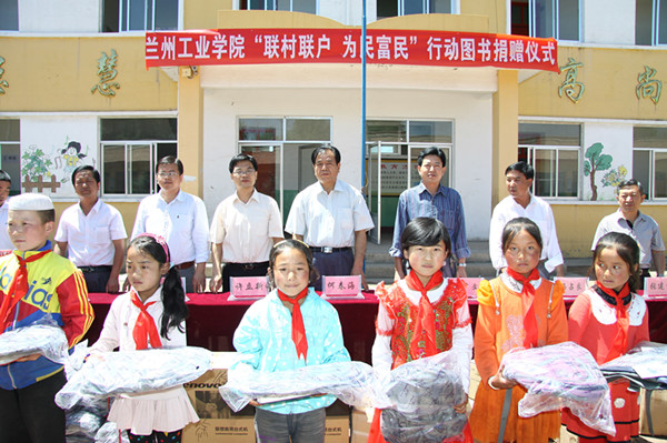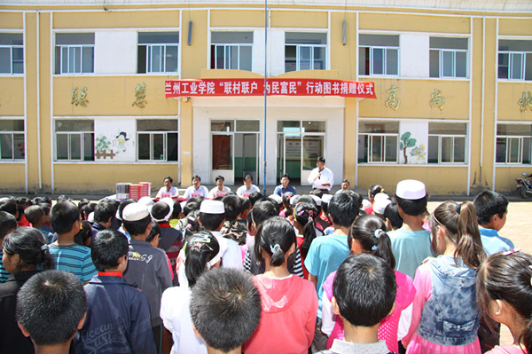 2012年7月5日,院党委副书记何春海带领“联村联户、为民富民”行动领导小组部分成员冒酷暑前往临夏回族自治州积石山县,为学院“联村联户、为民富民”行动的联系村长家寺小学、徐扈家小学送去各类青少图书1116册,文体用品311件。