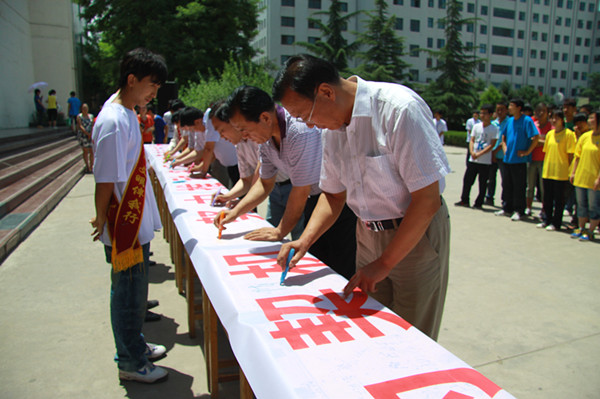 为迎接学院揭牌暨建校70周年庆典活动的到来,6月25日中午,学院在北校区餐厅门口隆重举行了“我为母校添光彩”大型签名活动。党委书记、院长陈彪,党委副书记何春海,副院长冯彪、魏军,纪委书记廉志端,院长助理、组织部部长马铁信出席签名活动,并在“以学院揭牌暨建校七十周年为契机 努力推动各项工作跨越式发展”的条幅上签名、写下对学院的祝福。随后,与会领导还饶有兴致地观看了由软件工程系举办的“e海扬帆 科技有我”70年风雨征程海报展。活动中院团委向全体团员青年发出倡议,号召同学们在校庆期间,做到遵守纪律、服从安排、服饰整洁,言行得体,与人友善,上下齐心,众志成城,以饱满的热情、高度的事业心和责任感投入各项工作,用自己的实际行动向社会展示工业学院人奋发进取、昂扬向上、团结一心的崭新精神风貌!此次活动吸引了广大师生积极踊跃参加,同学们纷纷表示,要用自己的实际行动,向母校七十华诞献礼!(团委/供稿 宣传部/摄影)