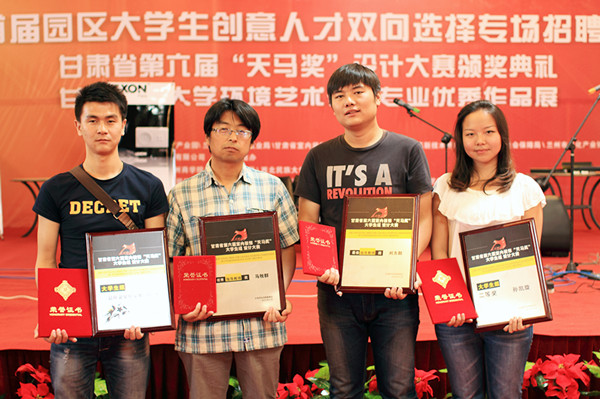 6月16日上午,由甘肃省室内装饰协会举办的“甘肃省第六届室内装饰‘天马奖’(大学生组)设计大赛”颁奖典礼在兰州创意文化产业园举行。包括兰州大学等在内的十余所省内高校参加了本次大赛。 在此次大赛评比中,我院艺术设计系装潢专业学生孙凯璇、何天、魏鸿林分别获得大学生组二等奖、大学生组最佳效果展示奖和大学生组新秀奖。马牧群、刘方靓老师分别获得最佳指导教师奖、优秀指导教师奖。 本次大赛旨在更好的增进甘肃省高校在室内设计专业的教学实践和学术交流,进一步加强大学生职业技能,促进在校大学生更好走向社会、走进职场,为甘肃省地方经济发展提供更好的专业服务。(供稿、摄影/艺术系)