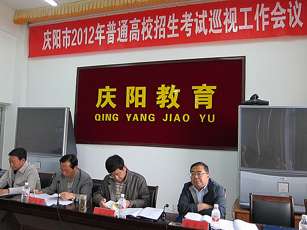 受甘肃省高等学校招生委员会委派,由副院长俞子泓任组长,招就处负责人和招生科工作人员参加的省高考督察第十四组于6月5日至9日对庆阳市考区2012年普通高等学校招生全国统一考试工作进行督察。 督察工作按照教育部和甘肃省对高等学校招生全国统一考试考务管理工作的相关要求进行。在庆阳市2012年普通高校招生考试巡视工作会议上,俞子泓一行认真听取了庆阳市招生委员会2012年普通高考考前准备工作情况汇报。在督察过程中,督察组与庆阳市、西峰区相关负责人一同检查了西峰区两个考点的考前准备、考试环境治理等工作;考试过程中抽查了西峰区、庆城县、华池县的考点组织、考务管理、监考教师对调等工作。(供稿、摄影/招就处)