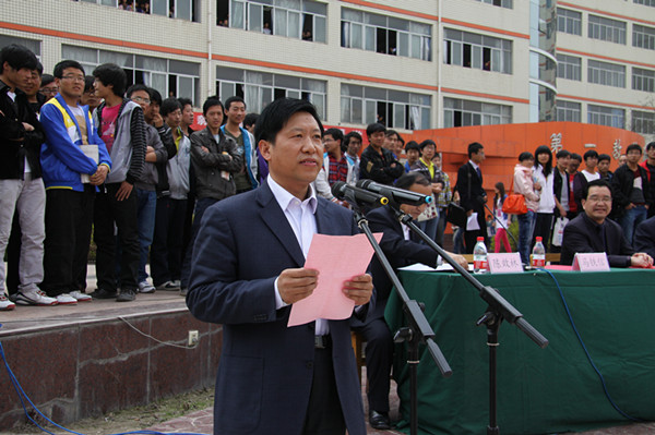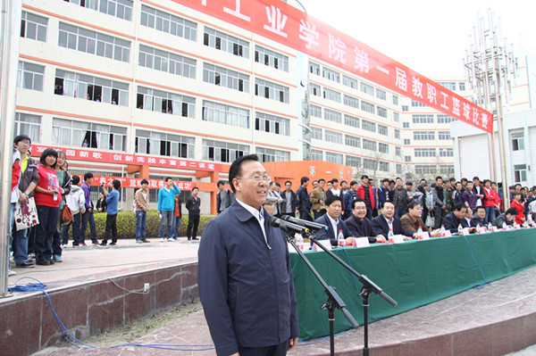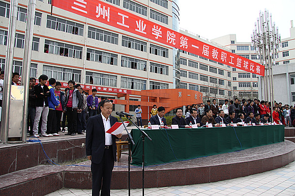 党委书记、院长陈彪宣布兰州工业学院第一届教职工篮球赛开赛
