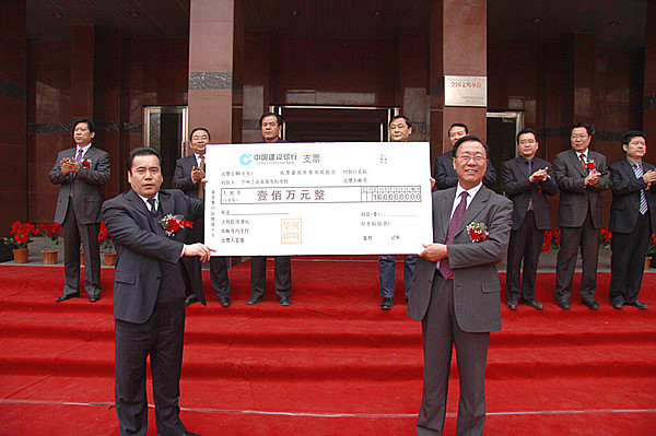 校友代表、97届毕业生、中国八冶第七分公司总经理何鸣华向学校捐款100万元人民币