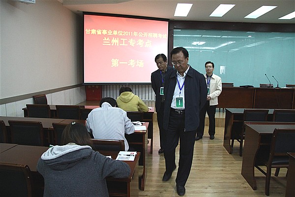 根据《甘肃省事业单位公开招聘人员暂行办法》,学校制定了《兰州工专2011年公开招聘工作实施方案》, 9月22日组织了公开招聘考试(笔试)工作。此次公开招聘人员考试涉及专业技术岗位21个,有25人参加了考试,考试共设2个考场。 考试期间,省人社厅事业单位管理处处长王泽兴、省教育厅人事处处长赵凯,学校党委书记、校长陈彪,党委副书记何春海,纪委书记廉志端到考场进行了巡视检查。(人事处/供稿 宣传部/摄影)