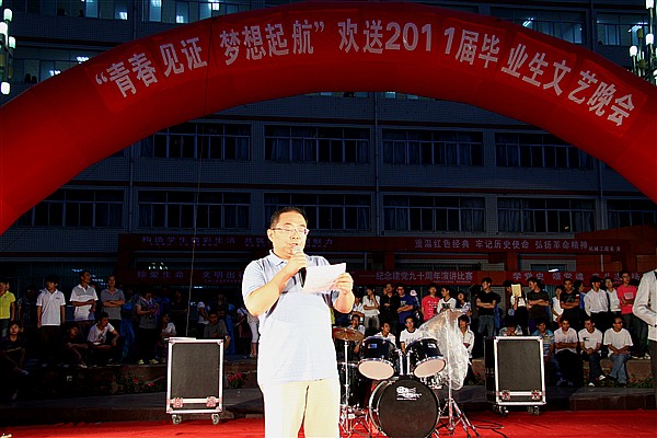 一朝师生情终生缅于怀,学子闯天下母校候佳音。6月20日晚八点,主校区篮球场上曲声悠扬、舞姿翩跹、掌声雷动,“青春见证 梦想启航”欢送2011届毕业生晚会这里温情演绎,同学们用精彩的文艺节目为毕业生送行。党委副书记何春海,副校长俞子泓、魏军,纪委书记廉志端、校长助理李贵山、马铁信出席晚会。2011届毕业生观看了晚会。