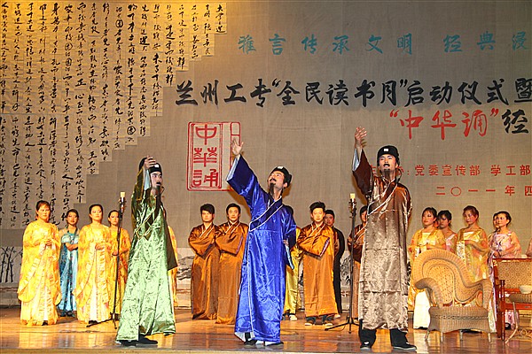 4月7日晚,由党委宣传部、学工部、校团委、图书馆联合举办的“全民读书月”活动启动仪式暨“中华诵”经典诵读大赛在主校区大礼堂隆重举行。党委副书记何春海致辞并宣布学校2011年“全民读书月”活动正式启动,各系党总支(支部)书记、团总支书记,团委工作人员以及一年级全体学生观看了比赛。 来自各系的选手带来了24个形式不同、精彩纷呈的经典朗诵节目,深深打动了每位观众,将比赛现场的气氛一次次推向高潮。经过评委的认真评议,最终由建筑工程系带来的《我的祖国》、《游子吟》获得一等奖;电气工程系的《我的祖国》、《宣州谢朓楼饯别校书叔云》,软件工程系的《青春中国》、《如梦令》获得二等奖;机械工程系、交通工程系、管理工程系和艺术设计系的朗诵节目获得三等奖。(团委/供稿 宣传部/摄影)