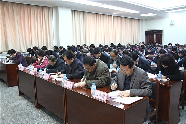 2月28日下午,学校在第一学术报告厅召开2010年度领导班子和领导干部考核民主测评大会。省委第一考核组组长、省委组织部干部三处正处级组织员杜健棠,考核组成员安华科、栾艺文、肖莉,在校全体校领导、中层干部及教授、离退休人员、民主党派、无党派人士代表共计101人参加了考核测评大会。会议由校长、党委副书记陈彪主持。