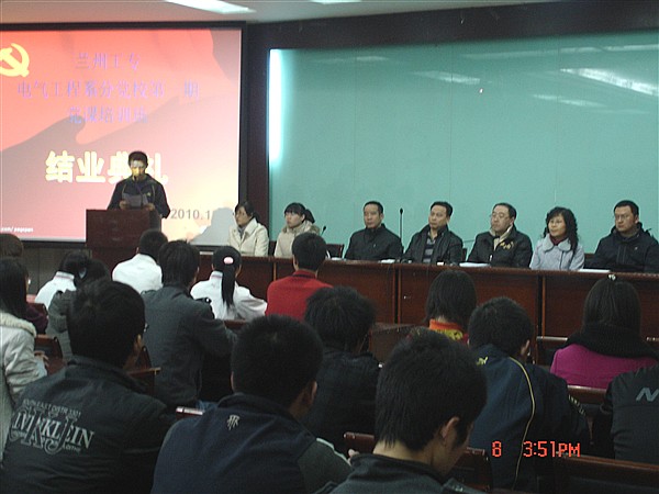 12月8日,电气工程系分党校第一期党课培训班结业典礼在新JT201举行,电气工程系领导、辅导员及本期培训的学员参加了结业典礼。结业典礼由电气工程系主任李双科主持。 会上,系副主任周征宣读了中共兰州工专党校文件。与会老师为优秀学员及各班代表颁发了优秀学员证书和党课结业证书。优秀学员代表王玲、高文云交流了党课培训心得体会。 电气工程系书记、分党校校长吴安生作了讲话,他希望同学们通过此次党课培训树立正确的世界观、人生观和价值观,能以党校学习为自身成长进步的新起点,坚定信念、勤奋学习、勇于实践、自觉奉献、奋发成长为高素质的合格的建设者和接班人!