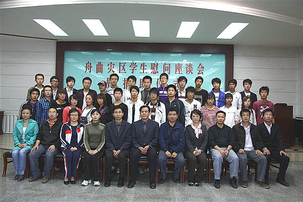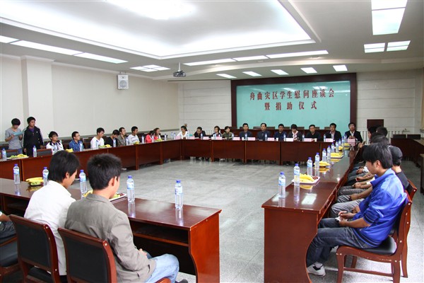 学生处处长温小强介绍了开学以来学校对舟曲灾区学生的资助情况。座谈会上,同学们分别发言,讲述了家里的受灾情况表达了对党和政府以及社会各界和学校在第一时间全力救灾、无私援助的感激之情。与会同学纷纷表示一定要化悲痛为力量,坚定信心,好好学习,为民族团结、家乡重建尽一份自己的力量。捐款转赠仪式上,学校按照资助管理中心掌握的受灾情况统计,向灾区学生转赠了全校学生的捐款一万九千五百元。