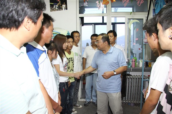 8月7日的雨夜,是甘肃舟曲历史上刻骨铭心的伤痛时刻,突如其来的特大泥石流灾害,使舟曲人民生命和财产受到严重威胁。学校领导非常牵心舟曲灾区学生,8月23日晚,俞子泓副校长、校长助理马铁信,在宣传部、学生处、招就处、团委、公寓中心等部门负责人及部分系书记的陪同下来到学生宿舍亲切慰问灾区学生。俞子泓副校长与学生们亲切握手并鼓励同学们振作起来,树立信心,全身心投入到紧张的学习和生活中去,以优异的学习成绩回报党和政府的关怀及社会各界的关爱。(学生处/供稿 宣传部/摄影)