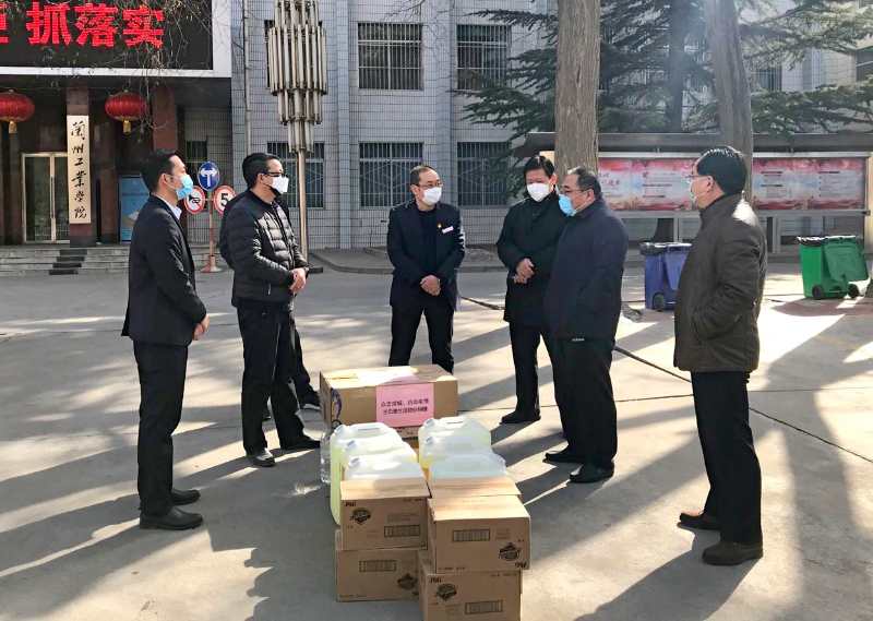 2月18日,兰州兰石雅生活物业服务公司党委书记、董事长高庆伟,总经理成文养一行4人,代表公司向学校捐赠了一批急需的防疫物资。党委书记俞子泓,纪委书记廉志端,副校长马铁信、李贵山,校长助理雷在福等出席捐赠仪式。