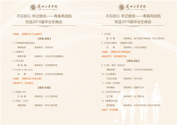 时间:2019年6月28日(星期五)19:50 地点:南校区田径场 出席:全体校领导,党委各部门负责人,教务处、招就处、学生处、团委、公寓中心负责人,各学院班子成员,各毕业班辅导员、班主任,2019届全体毕业生 欢迎广大师生前来观看!