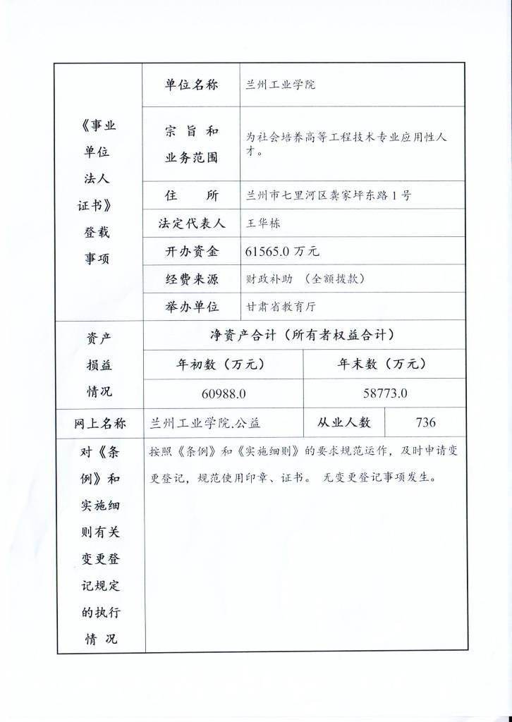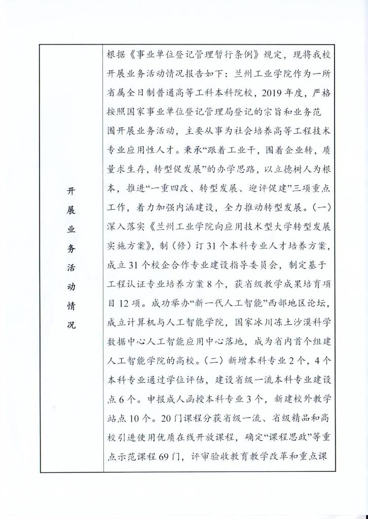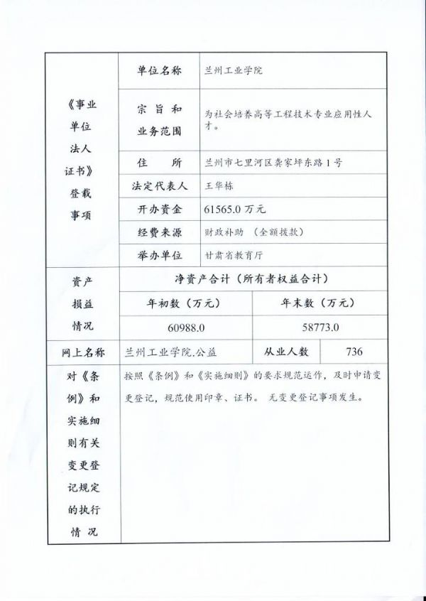 现将兰州工业学院《事业单位法人年度报告书》予以公示,如有不实,请以书面形式向省教育厅人事处反映。 公示时间:2020年4月1日-5月31日。