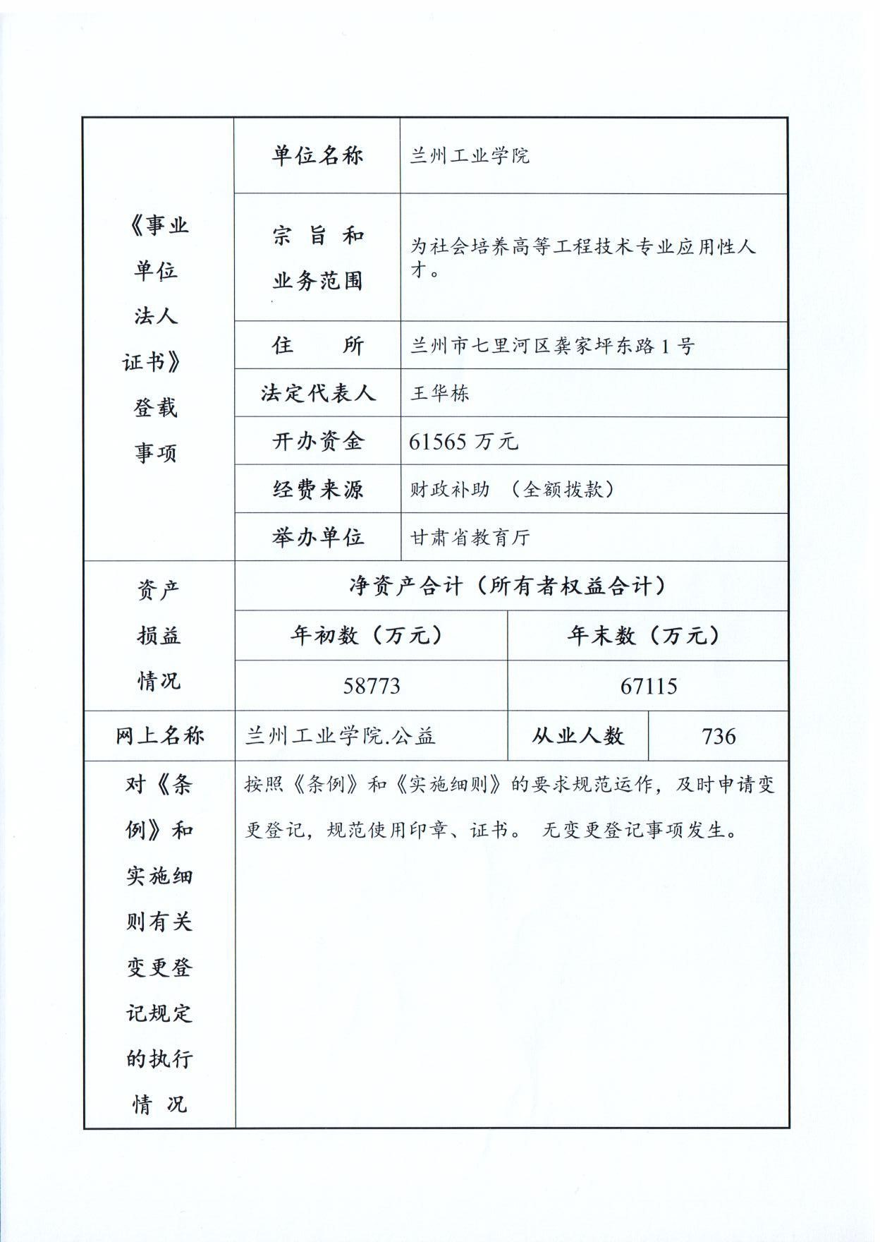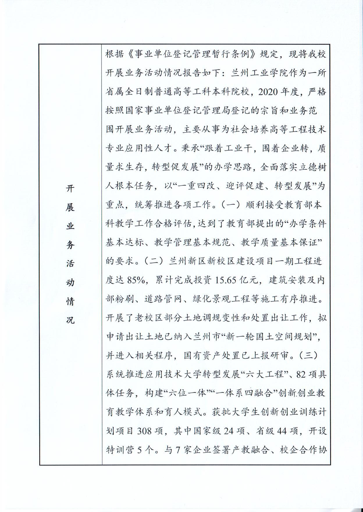 现将兰州工业学院《事业单位法人年度报告书》(2020年度)予以公示,如有不实,请以书面形式向省教育厅人事处反映。