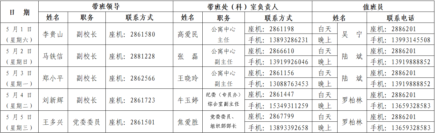 注:1.带班领导、带班处(科)室负责人按正常上下班时间在岗待班值班,值班人员必须24小时在岗待班值班,负责协调、处理各种突发、应急事件,坚决杜绝在家待班。