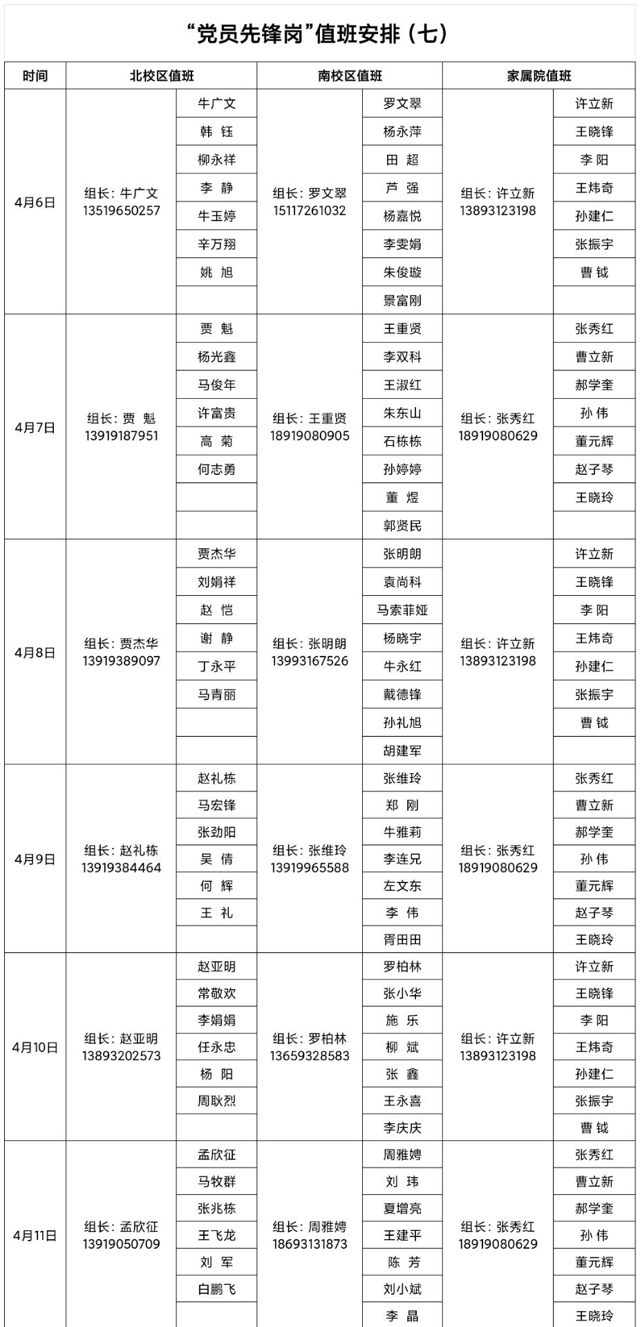 2.各组长主动带头值守,并负责安排好本组党员干部在“党员先锋岗”轮流值班,同时,对值班人员做出明确要求,不准空岗、脱岗,擅自离守。