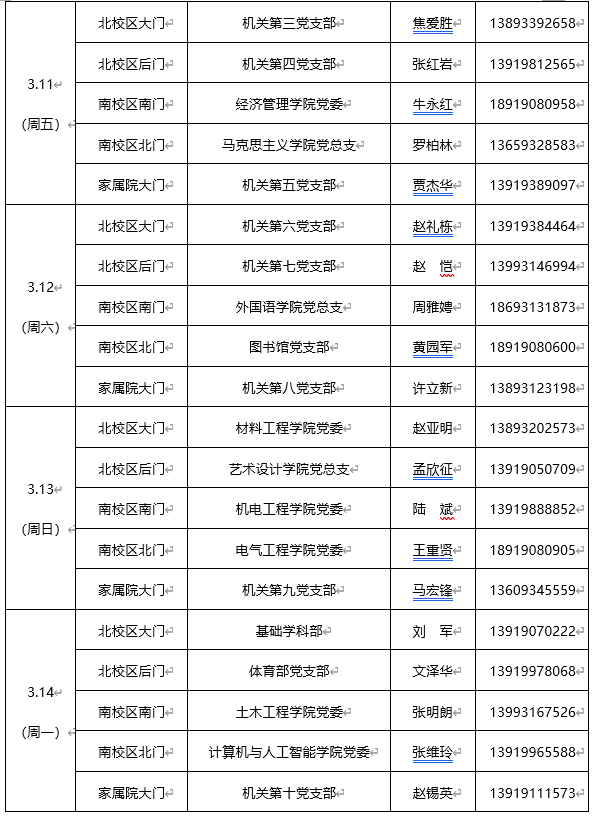 3.值班人员要主动担当,积极作为,在岗期间参与门卫工作,值班期间遇到特殊情况,负责人和值班人员要及时向疫情防控办汇报沟通,并协助处理。