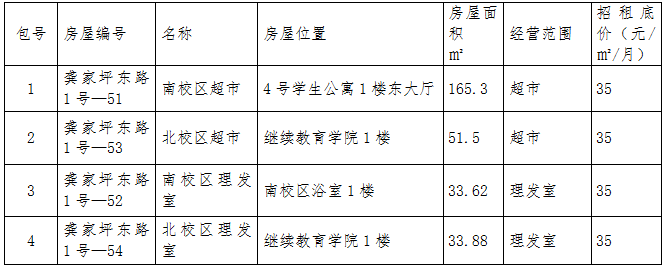 本次招租的经营性房屋共4间,建筑面积共284.3m2,水电暖等费用按经营性房屋收费标准结算。公开招租经营性房屋基本信息如下: