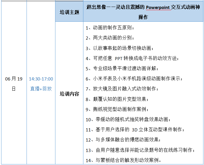 2.本次培训为系统性的PPT制作技术培训,是高校教师教学能力提升的必修核心技能,培训专家倾囊相授,干货满满,十分难得,请认真学习并做好笔记,尤其是新入职教师,要全程做好研修学习记录。
