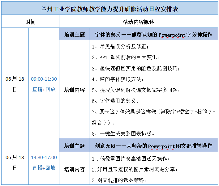 详见附件2:兰州工业学院6·18 PPT培训课程领取方式。