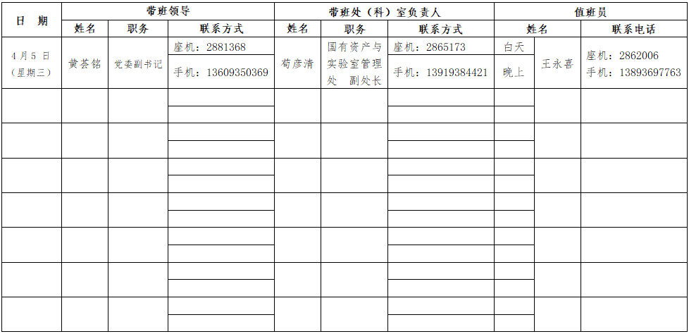 注:1.带班领导、带班处(科)室负责人按正常上下班时间在岗待班值班,总值班人员必须24小时在岗待班值班,负责协调、处理各种突发、应急事件,坚决杜绝在家待班;