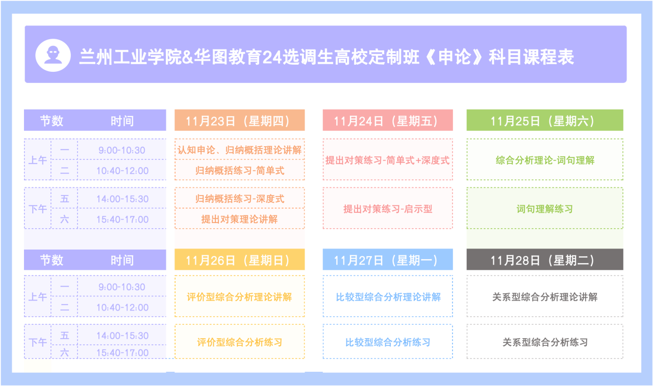 甘肃选调生讲练结合定制班=申论材料问答+应用文写作+大作文。具体课程安排如下: