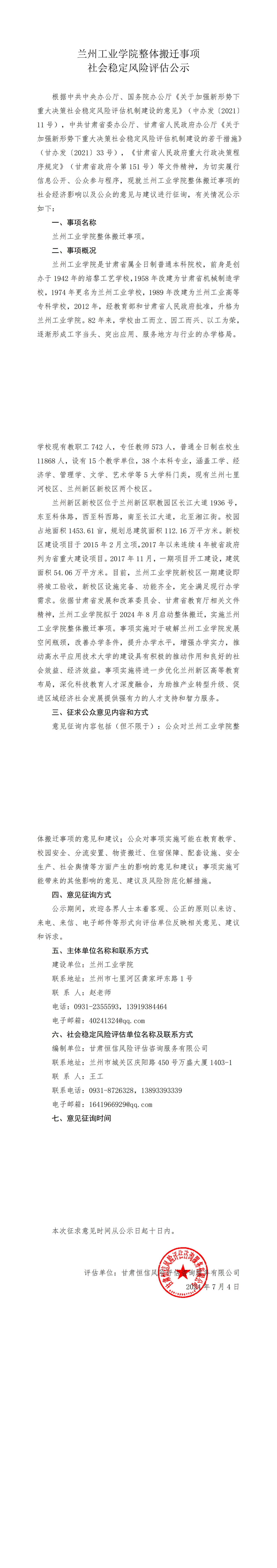 地址:兰州市七里河区龚家坪东路1号 联系电话:0931-2861012 邮编:730050 传真:2861111