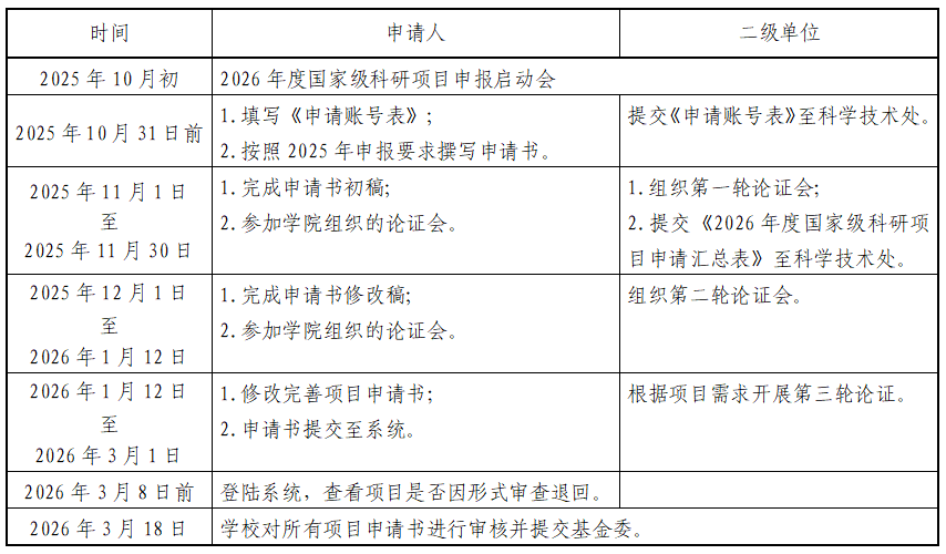3.2026年3月18日,科学技术处对所有项目申请书进行审核并提交基金委。