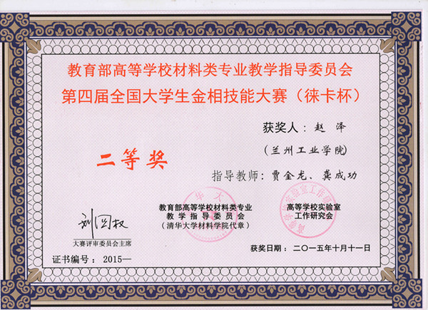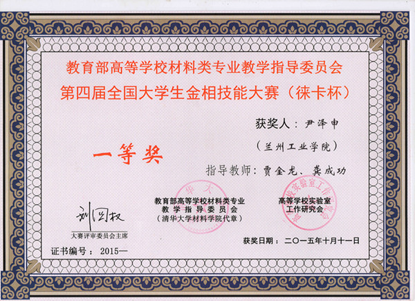 10月9日—11日,第四届全国大学生金相技能大赛在昆明理工大学举行。大赛面向全国各类本科院校,实行校内预赛、全国复赛和决赛的竞赛制度。兰州工业学院师生组成的参赛团队,与来自清华大学、上海交通大学、北京科技大学、中南大学、哈尔滨工业大学、西安交通大学等102所高校近600名师生同场竞技、交流切磋。经过三天激烈角逐,该校以总分第20名的成绩荣获“团体优秀奖”(共有28所高校获得此奖),该校学生尹泽申获一等奖,王涛、赵泽分获二等奖。教师贾金龙、龚成功获优秀指导教师奖。