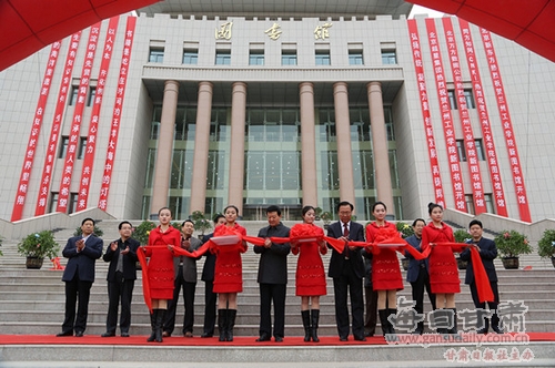 在悦耳的音乐声中,高永新、陈彪为新图书馆开馆剪彩。