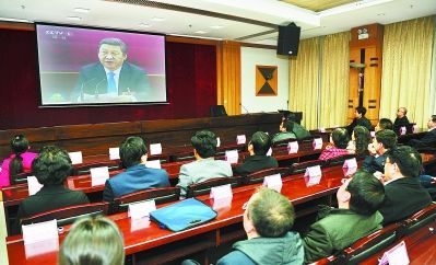 11月12日,省委党校师生一起收看《新闻联播》,学习十八届三中全会公报。 记者 盛学卿