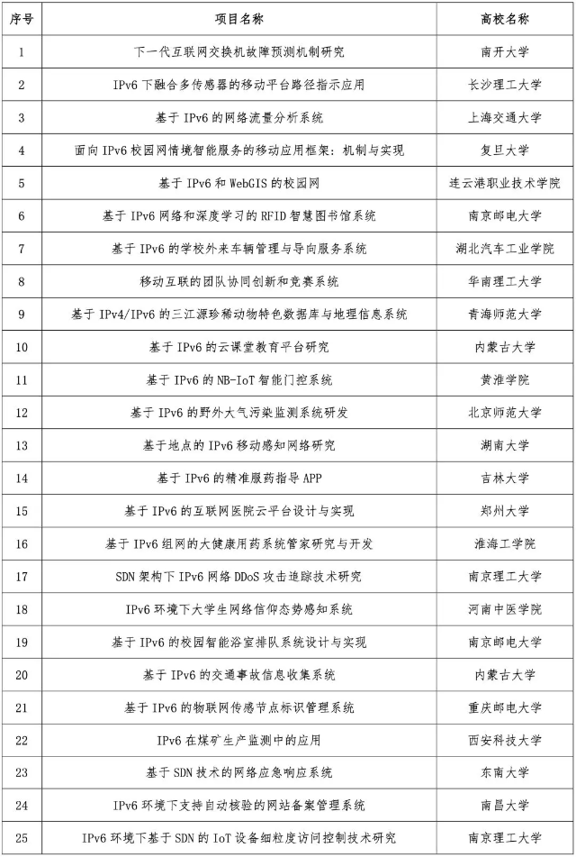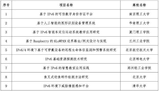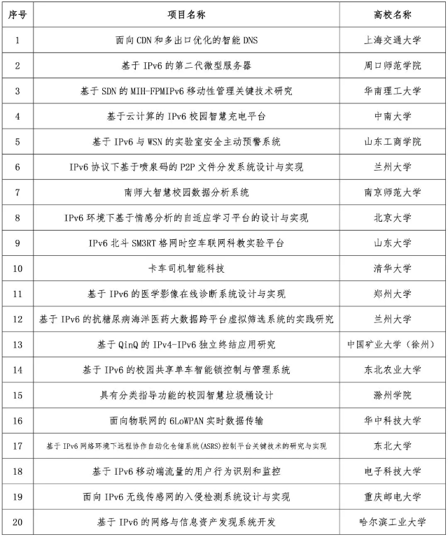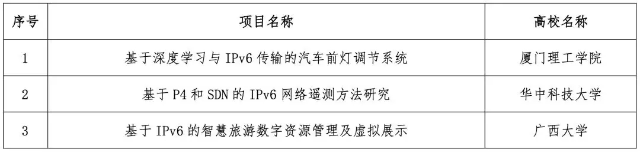 除创新大奖外,来自华南理工大学的《基于人工智能的图形识别设备管理系统》、北京大学的《鱼叉式钓鱼邮件检测方法研究》、北京邮电大学的《IPv6基础资源探测技术研究》、清华大学的《IPv6环境下威胁情报感知平台》以及兰州工业学院的《基于Raspberry的6LoWPAN边界路由/网关设计与实现》等10个项目获得了一等奖。这些项目均形成了技术特点鲜明、服务范围广泛的应用成果。