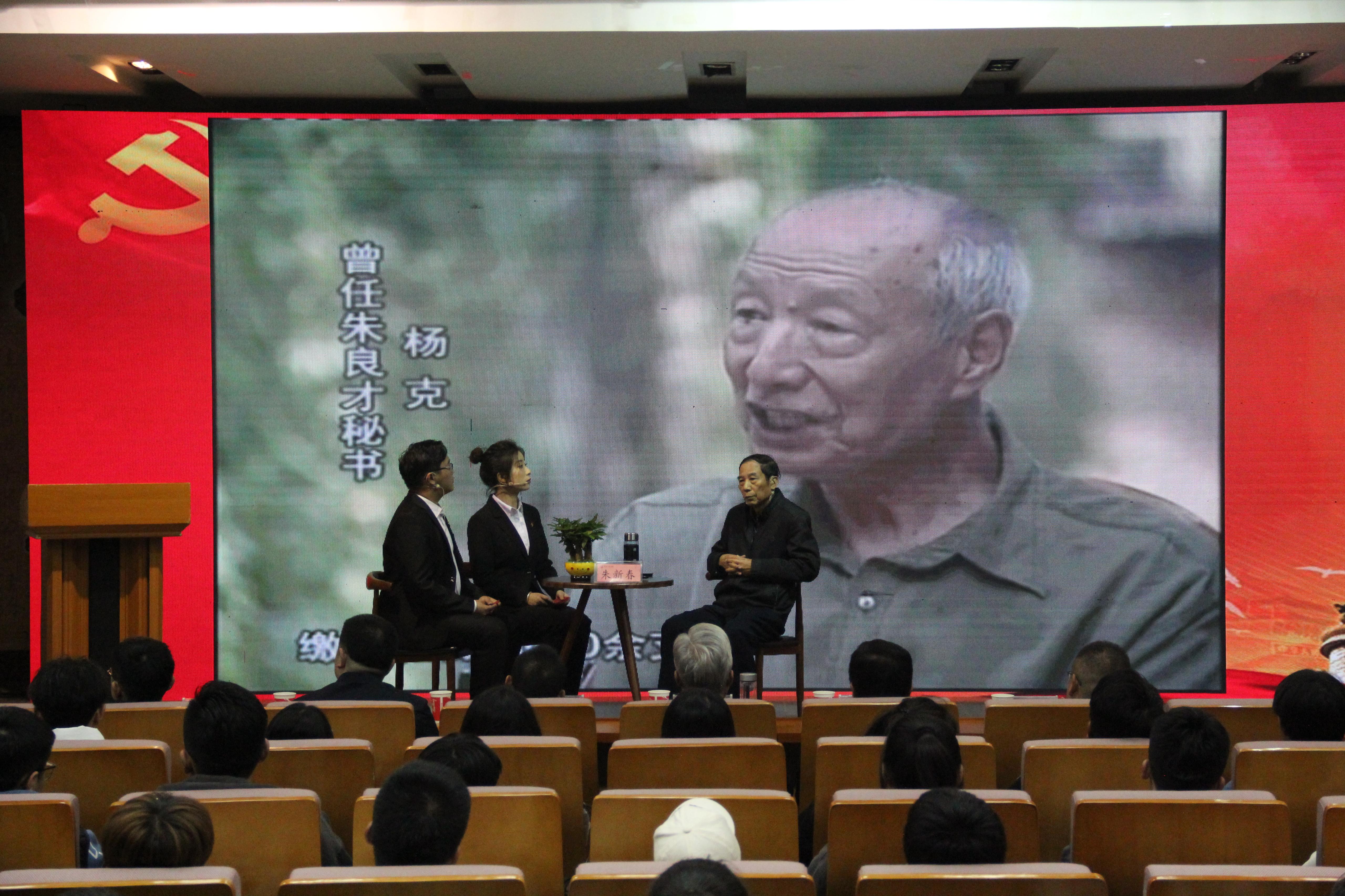 11月8日上午,工院人文讲坛红色基因传承系列报告会首讲在我校道德讲堂举行。原解放军某部大校、军旅作家,曾任人民日报社影视部主任、井冈儿女联谊会副秘书长兼教学组长,现任延安儿女故事团秘书长兼教学组长、八路军研究会宣讲团团长朱新春先生应邀来校作《一个共产党员的炼成——开国上将朱良才》专题报告。学校党委副书记黄荟铭,团省委团员和青年主题教育第三指导组出席报告会。