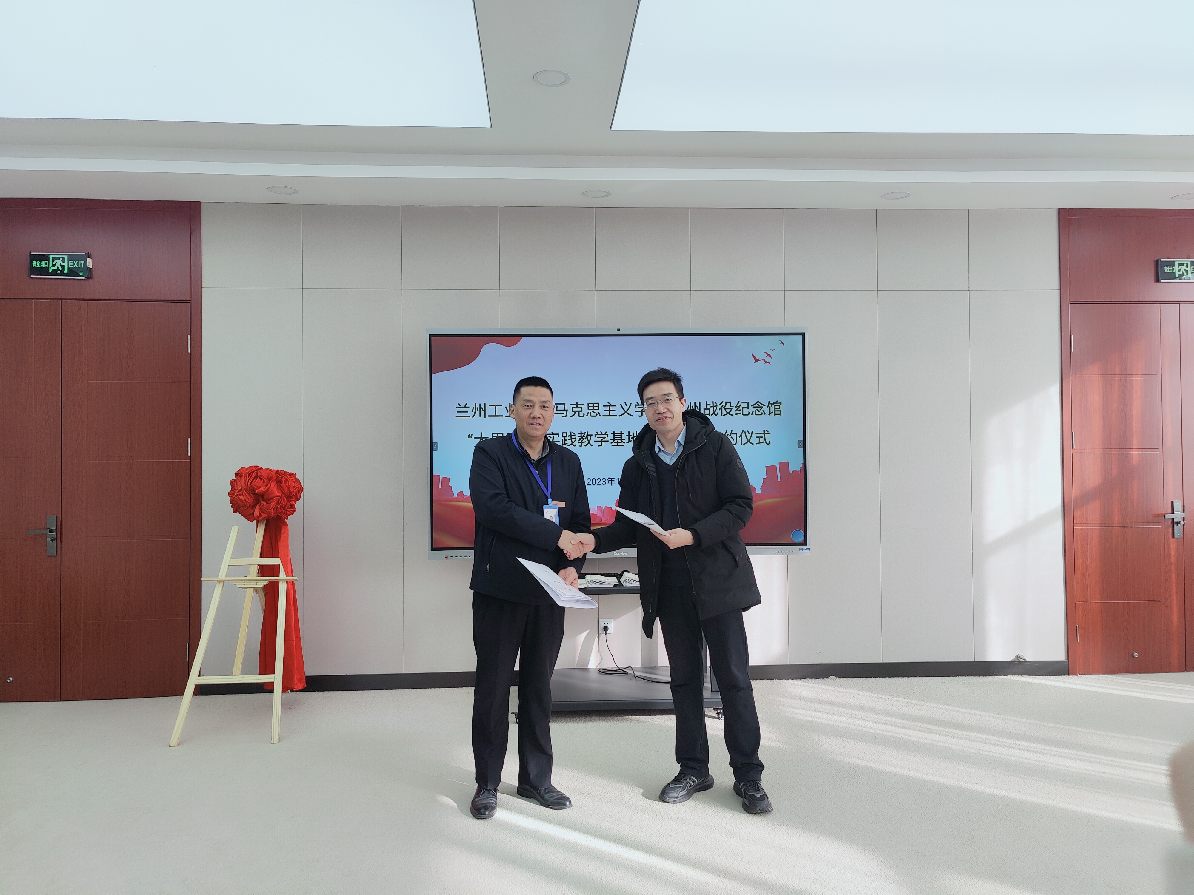 11月16日,马克思主义学院与兰州战役纪念馆共建“大思政课”实践教学基地签约暨揭牌仪式在兰州战役纪念馆举行。兰州战役纪念馆副馆长李永强,马克思主义学院党总支书记罗柏林,副院长汤艳春、韩艳慧,纪念馆工作人员,思政课教师代表参加仪式。
