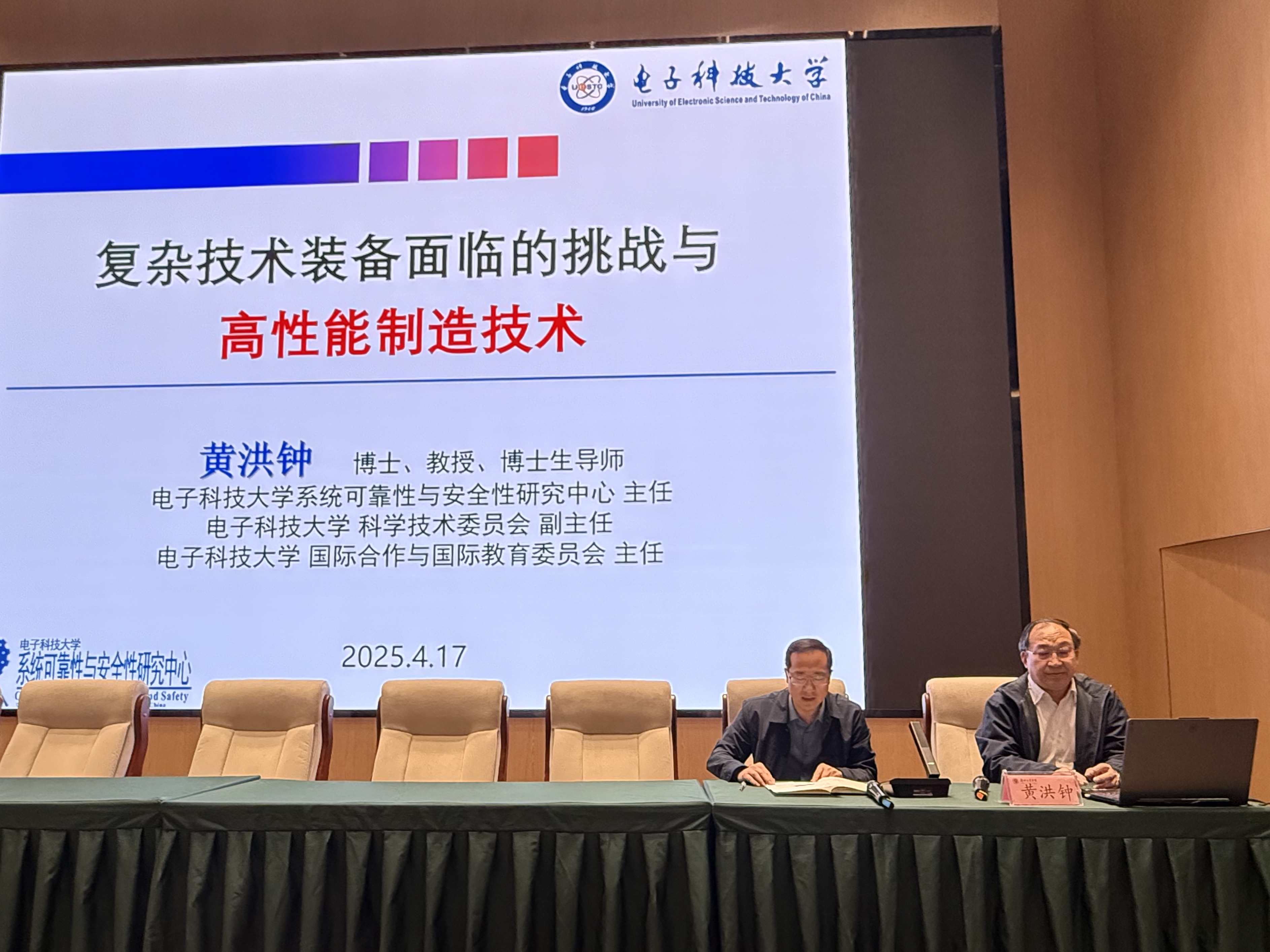 4月17日,我校特聘教授、电子科技大学黄洪钟教授应邀来校作“复杂技术装备面临的挑战与高性能制造技术”专题学术报告,报告会由机电工程学院院长林小军主持。
