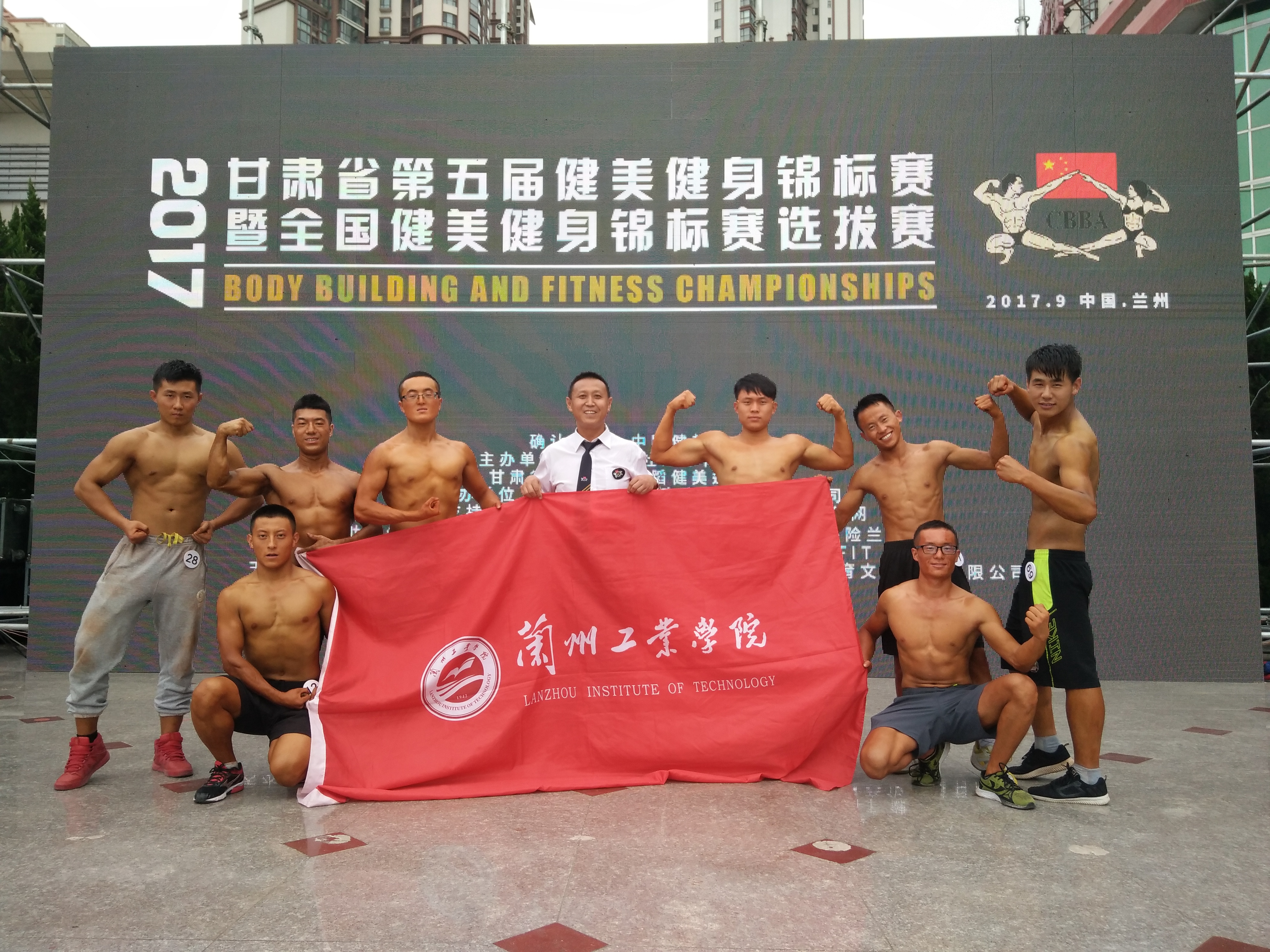 2017年9月2日,甘肃省第五届健美健身锦标赛暨全国健美健身锦标赛选拔赛在兰州市铁路局金轮广场闭幕。经过激烈角逐,我校健美队队员常翔程(软件(本)16―2班)获男子健美75公斤级第三名,郭雄雄(焊接本16―3班)获男子健美60公斤级第六名,杨俊伟(机设(本)14―3班)获男子健美65公斤级第六名,方重国(土木(本)14―1班)获男子健身模特组第四名,兰州工业学院获优秀组织奖,教师敬德权被评为优秀裁判员。