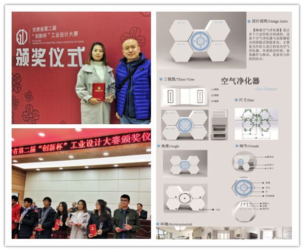 12月22日下午,甘肃省第二届“创新杯”工业设计大赛颁奖仪式在兰州交通大学举行。本次大赛共征集到各类作品934件,共有480件产品、作品进入展示阶段。大赛最终评选出产品设计组特等奖1名,金奖6名,银奖12名;概念作品组特等奖1名,金银奖各10名。我校艺术设计学院视传专业13-2班顾婷婷设计的《蜂巢空气净化器》(指导教师:杨伟、张启亮)获得概念作品组银奖,视传专业13-1班胡艺琼设计的《便携式烧烤炉》(指导教师:张启亮),机电学院史志成等设计的《可折叠的会议桌》获得概念作品组优秀奖。