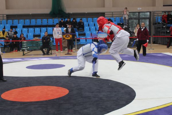 2019年全国武术短兵比赛于11月30日在武汉体育学院综合馆落下帷幕。来自北京体育大学等8所体育院校的40多名专业短兵选手参赛。我校队员发挥技术优势,不畏专业选手,在总共五个级别的比赛中,连克强敌,喜得佳绩。其中,柳明明获男子75公斤级以上第二名,赵金兰获女子58公斤级以下第三名,任文君获男子60公斤级以下第五名,杨欢获女子58公斤级以上第五名,张强获60-75公斤级以上第五名的成绩。