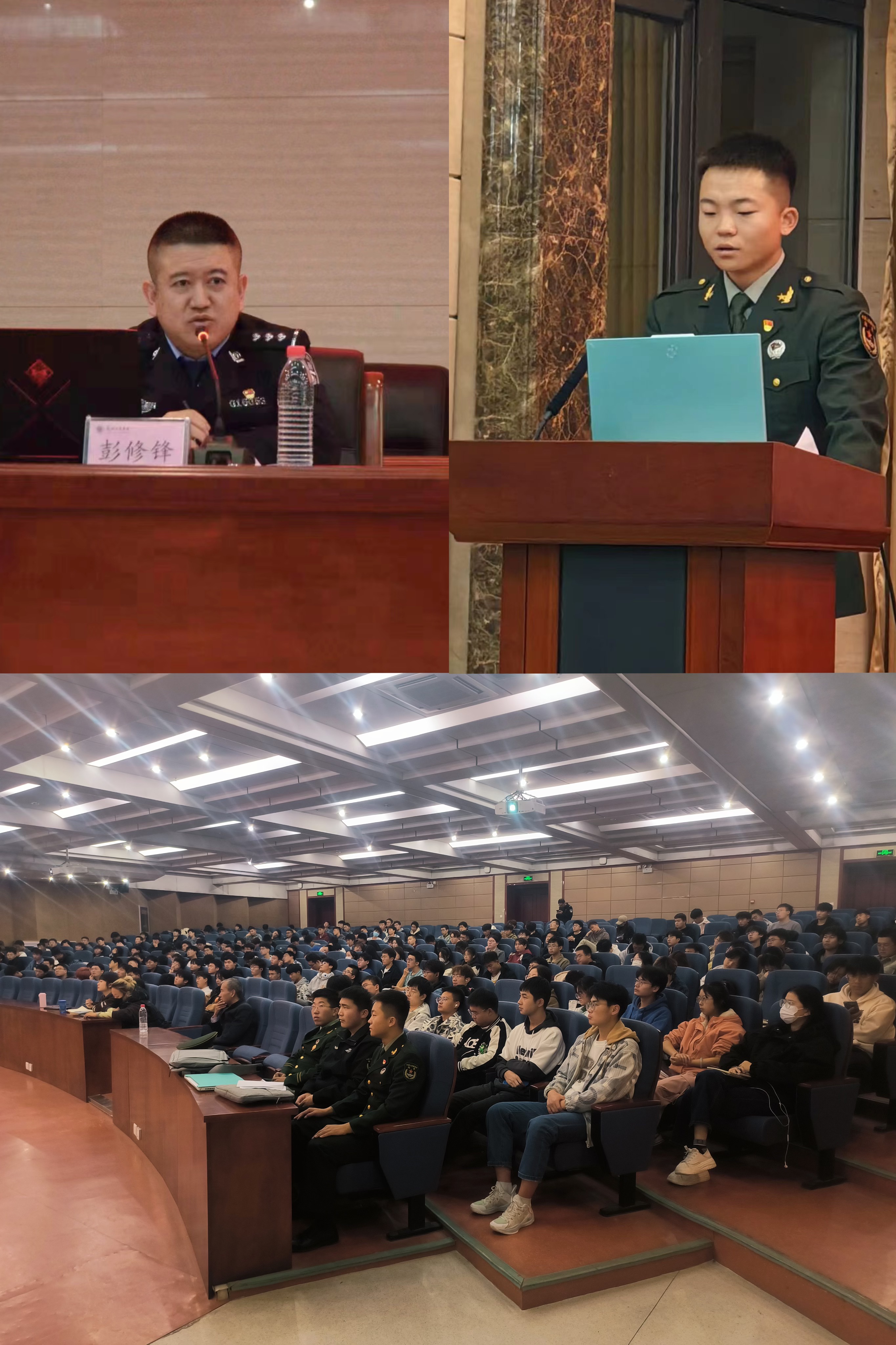 学院两位退役大学生士兵高鑫、王嘉辰为大一新生分享了参军入伍经历以及军旅生活感受,讲解了大学生应征入伍的各项政策,激励大家携笔从戎,投身绿色军营,助力强军伟业,在实现中国梦强军梦的壮美事业中书写人生华丽篇章!