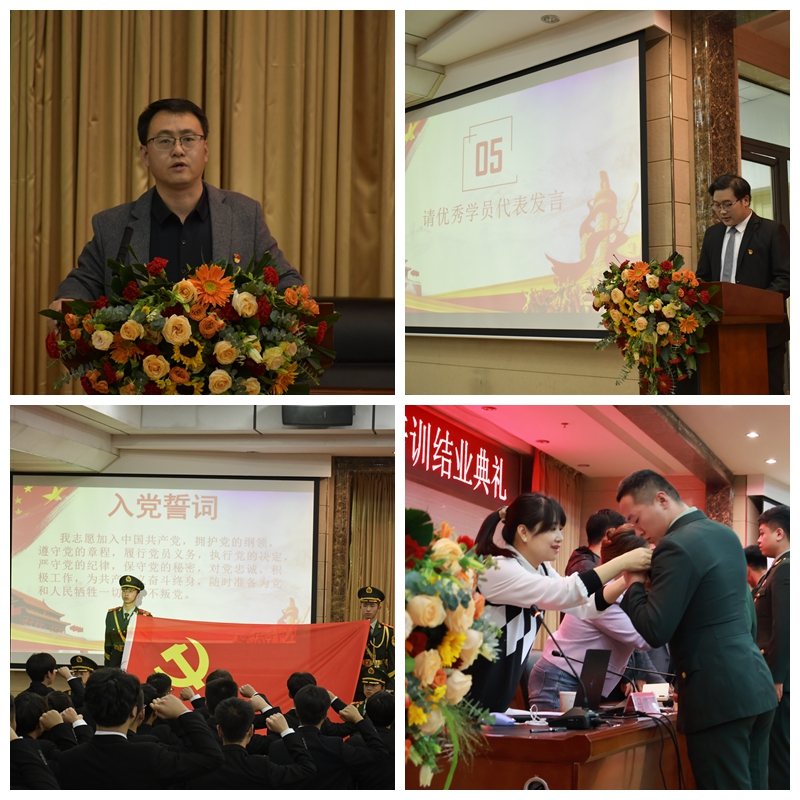 结业典礼上,学院领导为151名党员颁发了结业证书,对他们圆满完成培训表示祝贺。陆斌及6名学生党支部书记为退伍学生党员佩戴党员徽章,老党员为新党员佩戴党员徽章,并面向党旗一同宣誓,表达了他们对党组织和党的事业承担的政治责任,坚定为共产主义奋斗终身的决心。