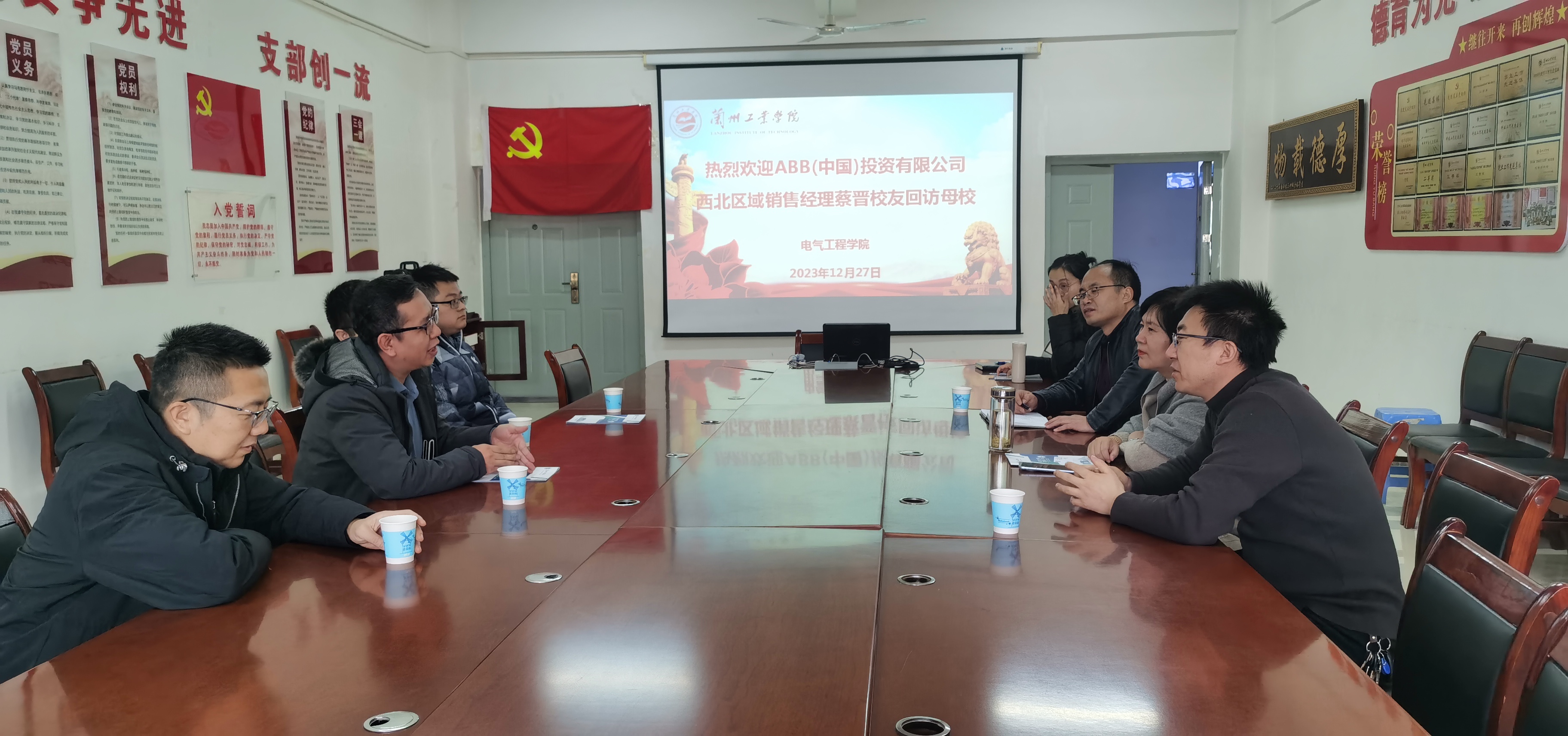 12月27日上午,我校通信工程05级校友、ABB(中国)投资有限公司西北区域销售经理蔡晋回访母校,再叙师生同窗情谊。电气工程学院在会议室408召开座谈会,学院党委书记王重贤、院长王淑红与校友亲切座谈交流。ABB(中国)投资有限公司西北区域技术工程师靳军、李建军,学院辅导员参加了座谈会。