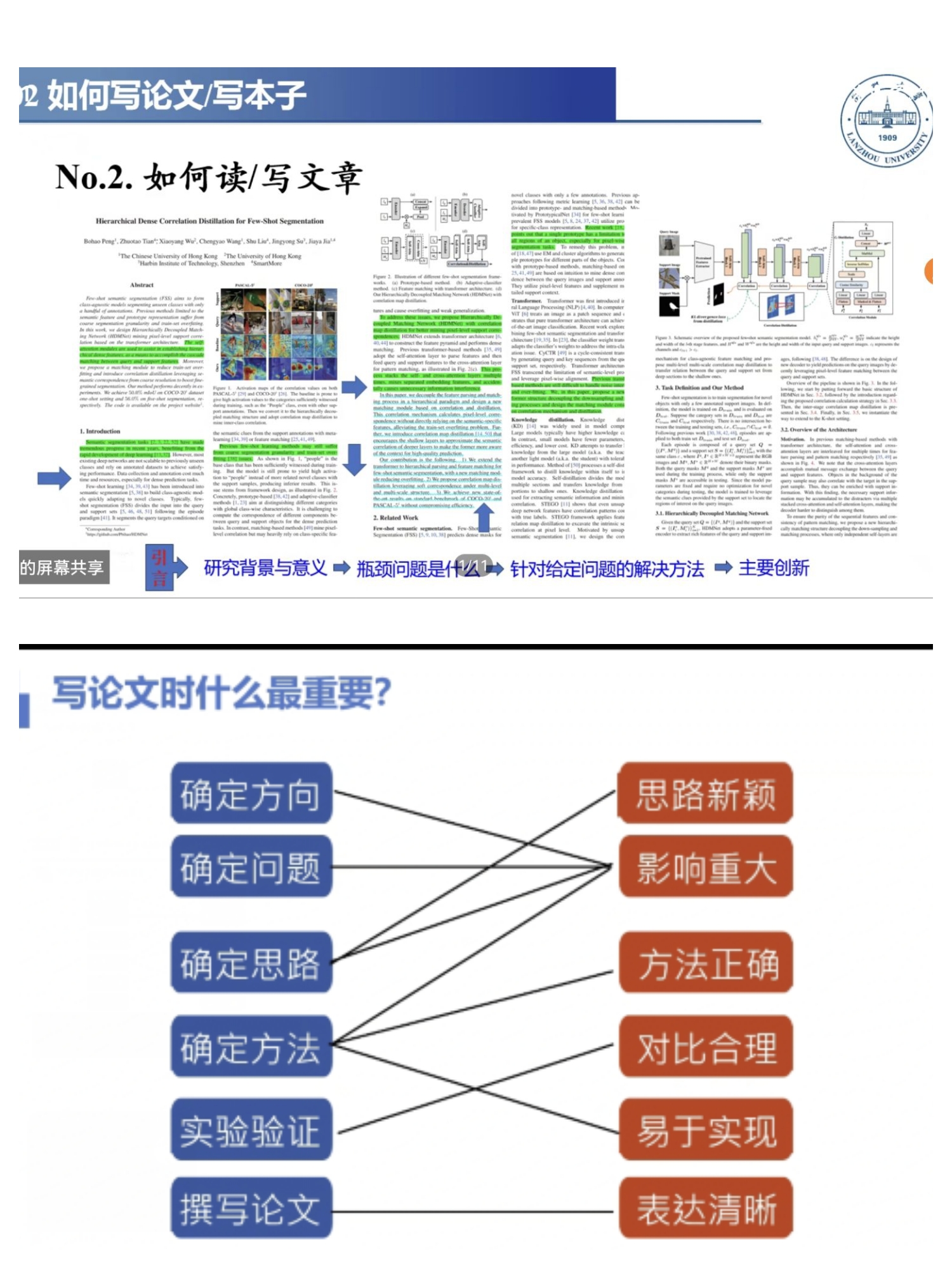 分享会上,常兆斌围绕《深度学习的可解释性及其在小样本图像语义分割中的应用》,分享了在小样本图像语义分割方向的研究现状、方法及成果。针对学术论文撰写,他以自己撰写的论文为例从论文题目、摘要、绪论、方法、实验数据、结论、参考文献等方面进行了详细说明。并针对项目申报书撰写注意事项进行了经验分享。