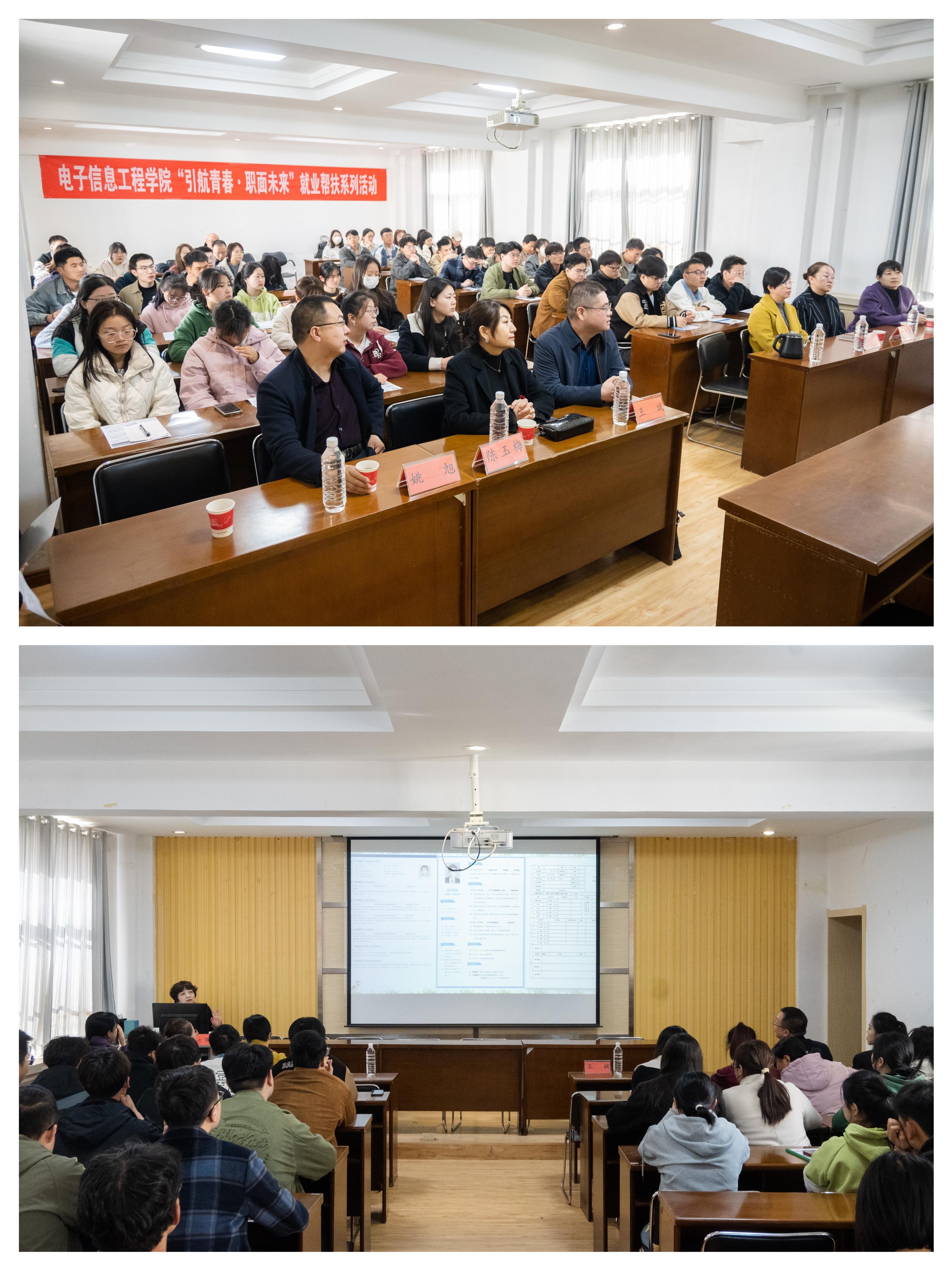 学校大学生就业指导中心负责人,电子信息工程学院相关领导、学生工作办公室全体成员、毕业班班主任和部分2024届毕业生参加活动。