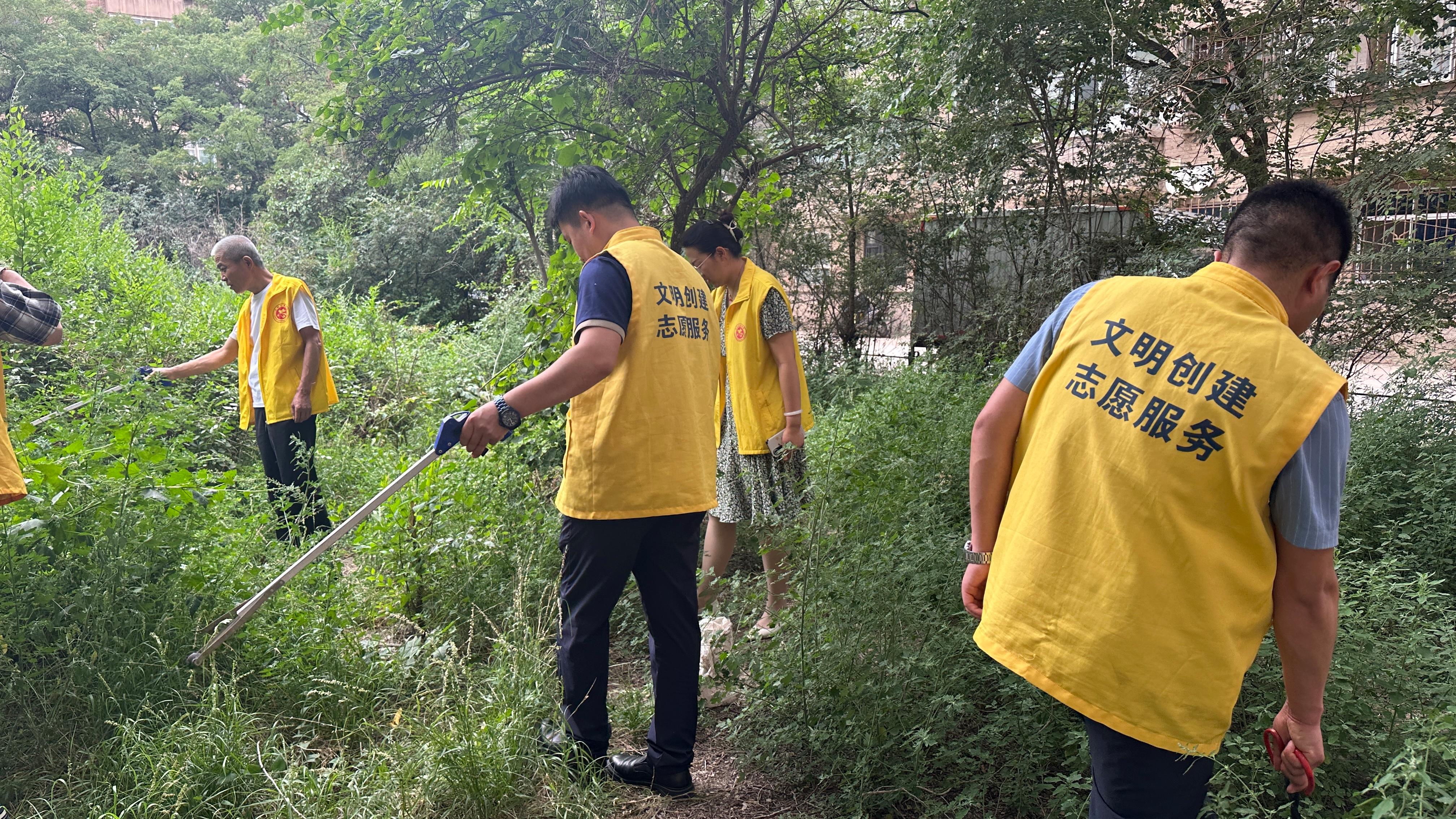 会后,志愿者深入丽苑社区所辖居民小区,对社区中绿化带、花园等地认真进行了巡检。