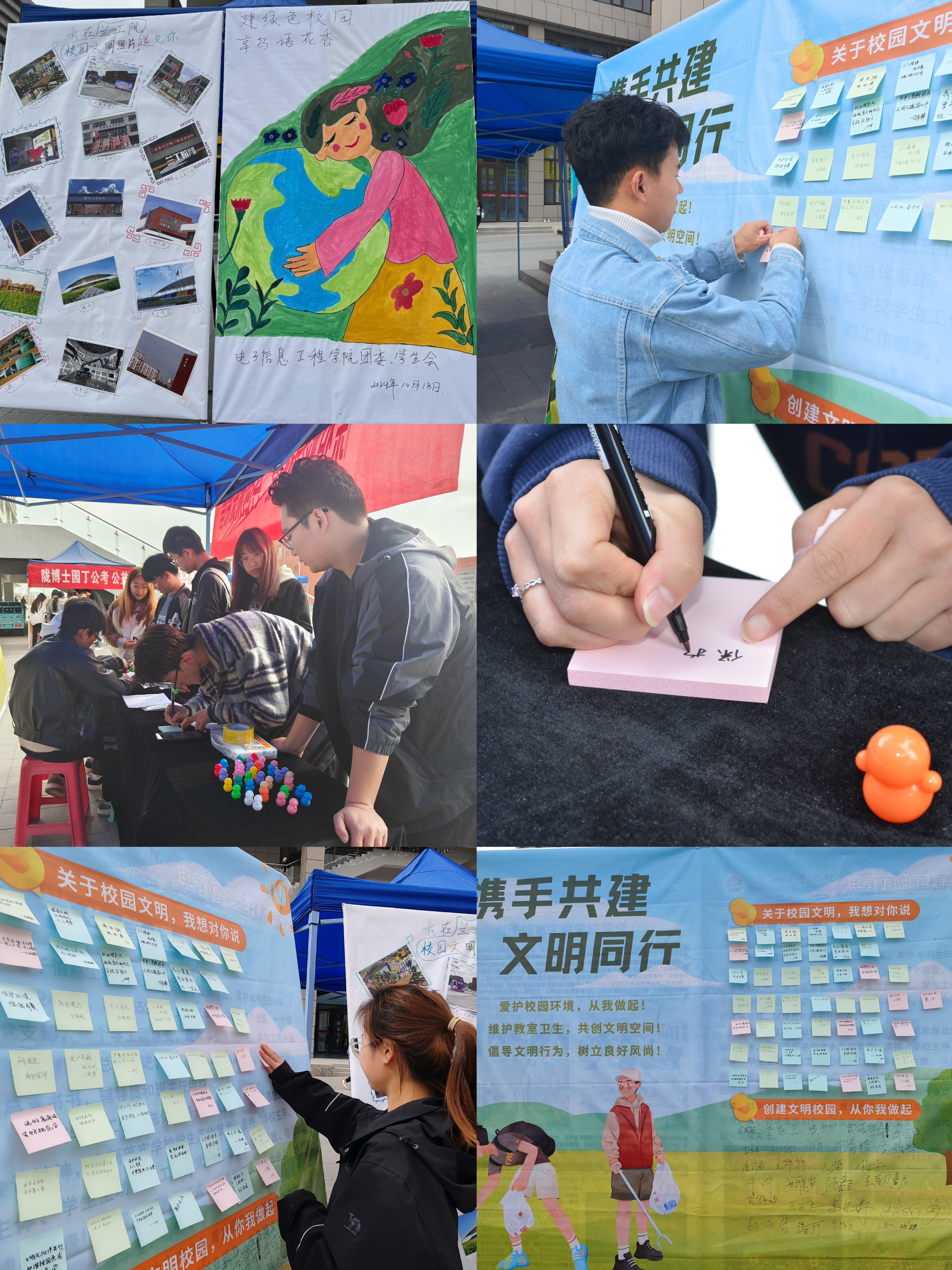 10月18日,电子信息工程学院在大学生活动中心楼前小广场举办“文明校园,你我共建”活动。