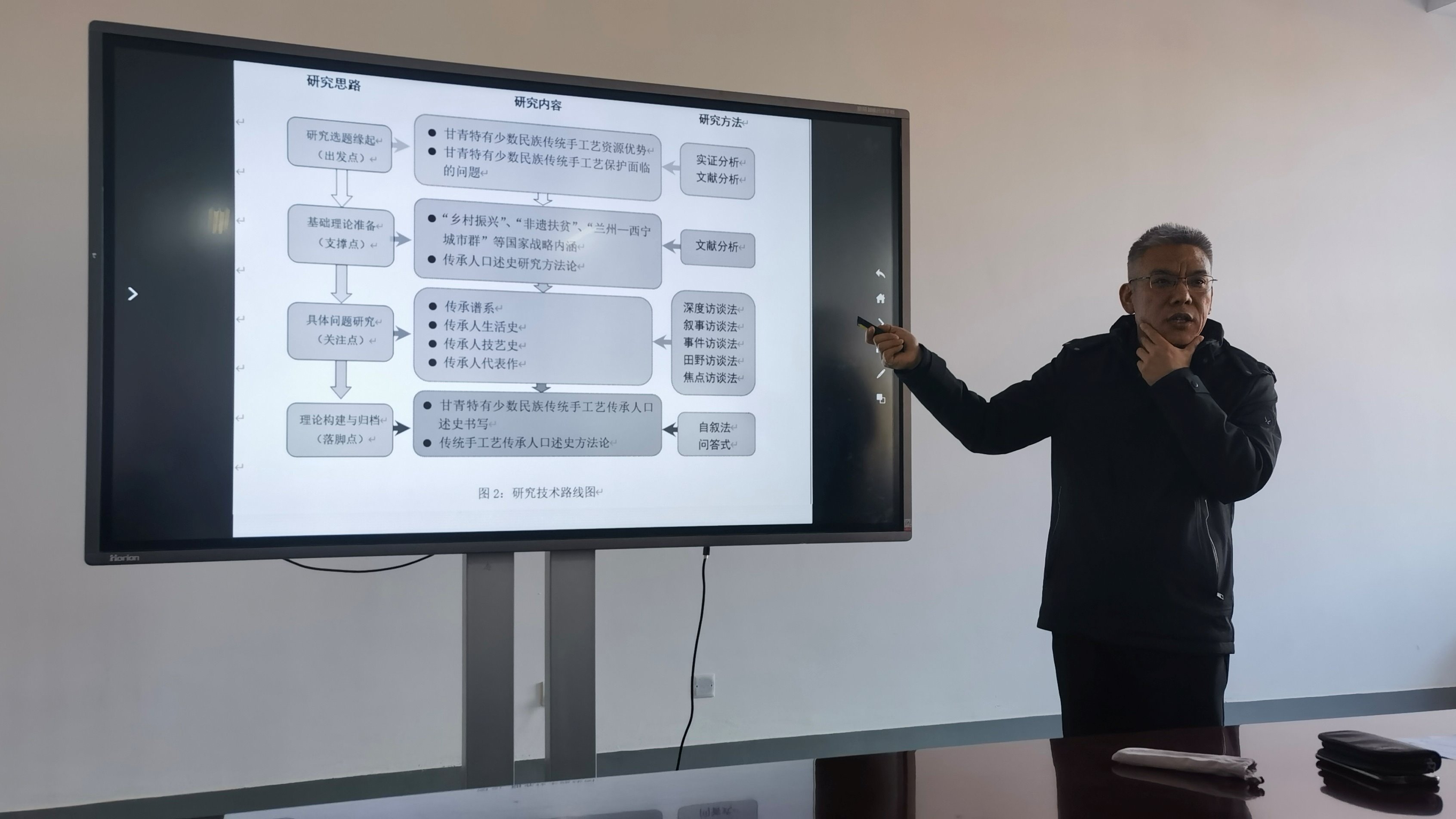 11月26日,兰州城市学院雷鸣教授作了题为“国家社科基金课题申报书的撰写”的专题报告。他从选题角度出发,系统讲解了申报书撰写的要点和技巧,帮助教师们更好地理解和把握申报书的写作要求。