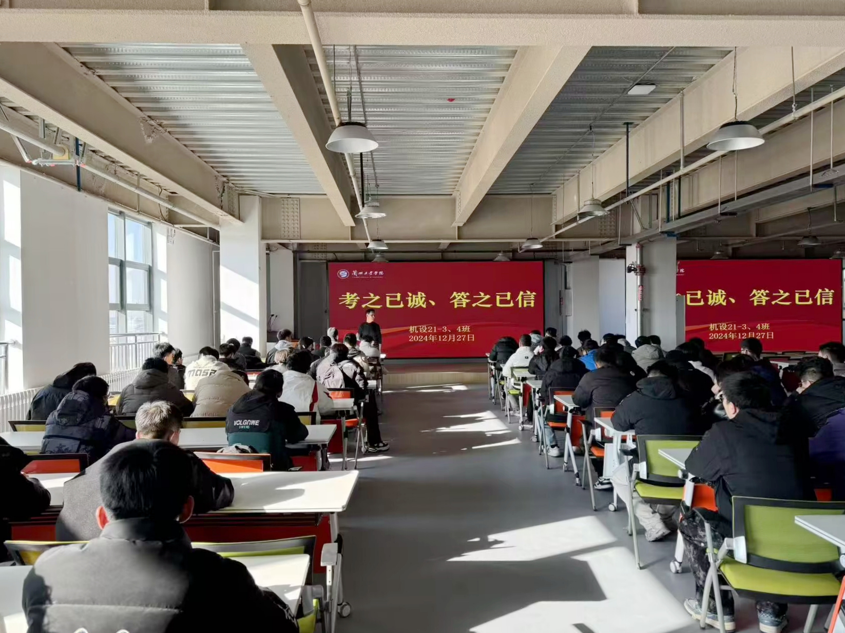 为进一步加强学风建设,严肃考风考纪,以考风促学风,培养学生诚信品格,营造诚信考试的良好氛围,12月24号机电工程学院开展了学风建设之诚信考试主题活动,此次活动全院各班级全覆盖。